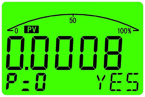 當選好校正點數(shù)后軟件會自動平分標定量程的壓力值,如果壓力設備無法滿足對應的壓力值,可在對應的標定點設置中修改壓力值。同時要注意標定過程中順序給定的壓力值大小必須是單調(diào)的,即AdL AdL: 零位校正點 設定此菜單時儀表將交替顯示零位校正點設定的壓力值與采集值,顯示校正點壓力值時菜單提示符顯示工廠單位,顯示校正點的采集值時菜單提示符顯示“A/D”, 零位校正點設定的壓力值已由“dPL”菜單設定,在此菜單中無需修改,當按下“M”鍵時開啟零點校正點采集,同時菜單提示符“A/D”開始閃爍,提示正在進行采集,待采集值穩(wěn)定后,再次按下“M”鍵確認本次采集。 Ad1~ Ad3: 中間校正點 中間校正點的數(shù)量,由“LIn”校正點數(shù)設置值自動分配,設定中間校正點時儀表將交替顯示校正點的設定壓力值與采集值,顯示校正點壓力值時菜單提示符顯示工廠單位,顯示校正點的采集值時菜單提示符顯示“A/D”。 如果壓力設備無法滿足對應的壓力值,可在顯示校正點壓力值時對其進行修改,在顯示校正點的采集值時,按下“M”鍵時開啟校正點采集,同時菜單提示符“A/D”開始閃爍,提示正在進行采集,待采集值穩(wěn)定后,再次按下“M”鍵確認本次采集。 AdH: 滿位校正點 設定此菜單時儀表將交替顯示滿位校正點設定的壓力值與采集值,顯示校正點壓力值時菜單提示符顯示工廠單位,顯示校正點的采集值時菜單提示符顯示“A/D”, 滿位校正點設定的壓力值已由“dPH”菜單設定,在此菜單中無需修改,當按下“M”鍵時開啟滿位校正點采集,同時菜單提示符“A/D”開始閃爍,提示正在進行采集,待采集值穩(wěn)定后,再次按下“M”鍵確認本次采集。 bSL: 變送量程下限設定,可設范圍(-19999~99999),菜單提示符顯示當前壓力單位 工廠標定時默認此菜單的值等于“dPL”菜單的值,當修改“dPL”菜單的值后,此菜單的值也隨之自動修改,其設定的壓力值將對應到“SoL”零點電流菜單設定電流值。 bSH: 變送量程上限設定,可設范圍(-19999~99999),菜單提示符顯示當前壓力單位 工廠標定時默認此菜單的值等于“dPH”菜單的值,當修改“dPH”菜單的值后,此菜單的值也隨之自動修改,其設定的壓力值將對應到“SoH”滿點電流菜單設定電流值 SoL: 零點電流設定,可設范圍(3.900mA~21.000mA) 設定此菜單時儀表將交替顯示工廠設定的零點電流值與零點電流D/A值,同時變送器輸出設定的電流值,當顯示設定的零點輸出電流值時菜單提示符顯示“L-OUT”,顯示零點電流D/A值時菜單提示符顯示“L-D/A”,儀表在出廠時已經(jīng)對電流值進行了粗略校準,可直接在顯示零點電流值的狀態(tài)下設定需要的零點電流,然后在顯示零點電流DA值時通過串接在電源回路中的電流表對輸出電流進行精確校準。 SoH:滿點電流設定,可設范圍(3.900mA~21.000mA) 設定此菜單時儀表將交替顯示工廠設定的滿點電流值與滿點電流D/A值,同時變送器輸出設定的電流值,當顯示設定的零點輸出電流值時菜單提示符顯示“H-OUT”,顯示零點電流D/A值時菜單提示符顯示“H-D/A”,儀表在出廠時已經(jīng)對電流值進行了粗略校準,可直接在顯示滿點電流值的狀態(tài)下設定需要的滿點電流,然后在顯示滿點電流D/A值時通過串接在電源回路中的電流表對輸出電流進行精確校準。 ZrO: 零滿屏蔽系數(shù),可設范圍(0.00~1.00),菜單提示符“%” 此菜單設定值表示零滿屏蔽范圍,設定值為“0.00”時為關閉零滿屏蔽功能。舉例:設定為0.10時表示當變送器輸出接近零點或滿點加減變送量程的0.10%時,變送器輸出會自動穩(wěn)定在零點或滿點上,不會出現(xiàn)因干擾而輸出跳動現(xiàn)象。 dAL: 超量程報警開關,可設范圍(0~1) 此設定值表示當壓力值超出傳感器量程上限的125%或低于量程下限的25%時顯示會閃爍提示。 “0”—關閉報警功能,提示符“NO” “1”—打開報警功能,提示符“YES” 4.5.5退出設定菜單 End: 退出設定菜單,可設范圍(0~1) “0”—不保存設定值,并退出設定狀態(tài),提示符“NSAVE” “1”— 保存設定值,并退出設定狀態(tài),提示符“SAVE” |