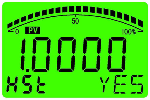 “NO” 不進行零點有源遷移; “YES” 進行零點有源遷移; 若30秒內(nèi)無任何按鍵操作,儀表將返回到測量模式。此功能禁止在生產(chǎn)過程中使用,適合在現(xiàn)場使用。 4.3.3滿點有源遷移 滿點有源遷移是將當前壓力設定為變送器的滿點輸出,對變送器施加滿點壓力,長按“S”鍵5秒以上,儀表將交替顯示當前壓力值與滿點輸出電流值,如右圖,菜單區(qū)顯示“HSt”,通過“S”鍵和“Z”鍵選擇需要進行的操作,提示符區(qū)相應顯示: