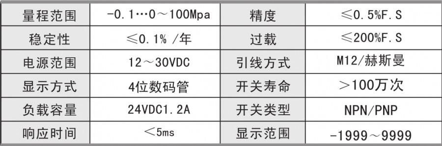 壓力預(yù)設(shè)開關(guān)點(diǎn)和延滯切換輸出