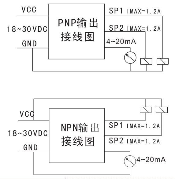 兩路開關(guān)量輸出(NPN/PNP),帶載能力1.2A
