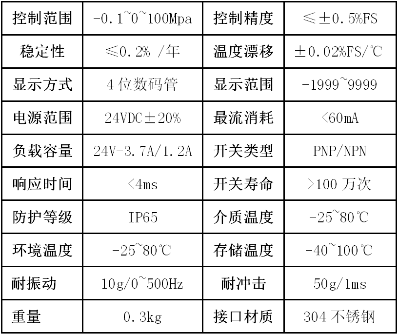 智能壓力開關(guān)是集壓力測(cè)量,顯示,輸出、控制于一體的智能數(shù)顯壓力測(cè)控產(chǎn)品。該產(chǎn)品為全電子結(jié)構(gòu),前端采用帶隔離膜充油壓阻式壓力傳感器,輸出信號(hào)由高精度,低溫漂放大器放大處理,送入高精度的A/D轉(zhuǎn)換器,轉(zhuǎn)換成微處理器可以處理的數(shù)字信號(hào),經(jīng)過運(yùn)算處理的信號(hào)控制兩路開關(guān),對(duì)控制系統(tǒng)壓力進(jìn)行測(cè)控。該智能數(shù)字壓力開關(guān)使用靈活,操作簡單,調(diào)試容易,安全可靠。廣泛應(yīng)用于水電,自來水,石油,化工,機(jī)械,液壓等行業(yè),對(duì)流體介質(zhì)的壓力進(jìn)行測(cè)量顯示和控制。