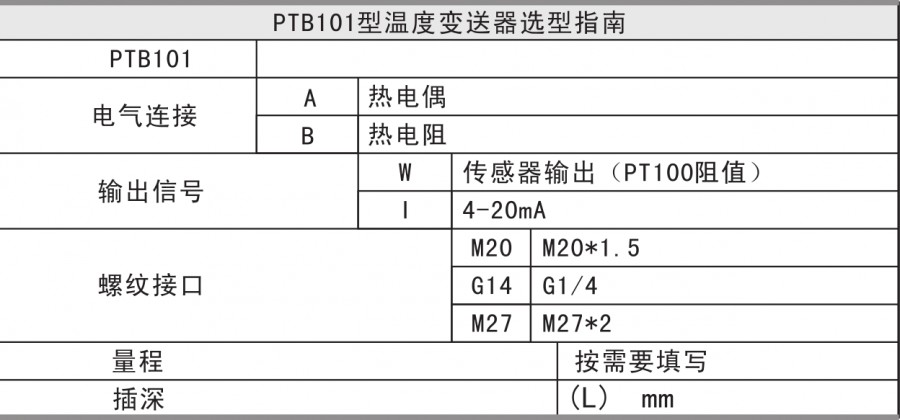 PTB101系列一體化溫度變送器是溫度傳感器與變送器的完美結(jié)合,以十分簡潔的方式把-200~1600°C范圍內(nèi)的溫度信號(hào)轉(zhuǎn)換為二線制4-20mA的電信號(hào)傳輸給顯示儀、調(diào)節(jié)器、記錄儀、DCS等,實(shí)現(xiàn)對(duì)溫度的精確測量和控制。一體化溫度變送器是現(xiàn)代工業(yè)現(xiàn)場、科研院所溫度測控的更新?lián)Q代產(chǎn)品,是集散系統(tǒng)、數(shù)字總線系統(tǒng)的必備產(chǎn)品。
